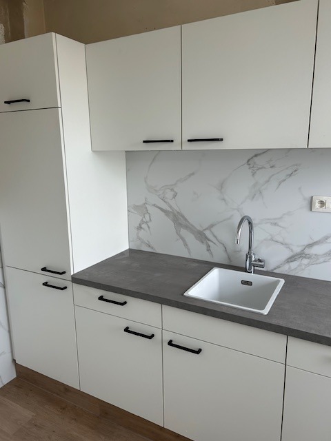 In het centrum van Antwerpen, op een appartement, vernieuwden we een oude keuken tot een hedendaagse en moderne kitchenette.