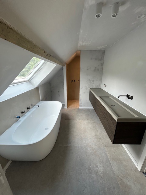 In het Vlaams-Brabantse Zichem verrijst er onder het dak van een woning een knappe badkamer met stone age accenten.